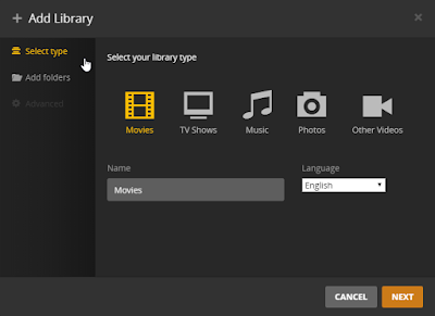 Isso levará você para a etapa da Biblioteca de mídia. Nele você pode gerenciar e editar suas bibliotecas. Por padrão, você terá duas fotos e músicas, mas poderá criar tudo o que quiser. Para criar, por exemplo, uma biblioteca com sua série ou filmes, pressione o botão Adicionar biblioteca.